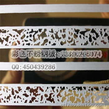 蚀刻板俗称烂花板,是在不锈钢板表面通过化学的方法腐蚀出各种花纹图案,以8K镜面板、超精磨镜面板(用于高要求)拉丝板、喷砂板、和纹板为底,经清洗处理后,对表面再次进行加工,使其出现各种图案明暗相间,表面凹凸、立体感强的高档效果。蚀刻的成品,表面还可按客户喜爱的风格镀各种颜色, 可单色,可双色(即蚀刻部分及保护部分做成不同颜色)如金黄色,玫瑰金,香槟金,茶色,咖啡色,古铜色,紫金色,黑色,宝石蓝等.色彩绚丽、蚀刻线条凹凸有致的效果为您的装修更上档次。常用厚度及规格:0.8-1.5mm(最薄可加工0.3mm,最厚3.0mm),1000*2000、1219*2438、1219*3048、1500*3000;还可按客户规格量身订做。本公司引进国外先进科技,率先采用感光蚀刻技术,腐蚀深度50C、线条宽1mm不烂边,被客户广泛应用于电梯装修、金属箱体壳、地铁工程等。