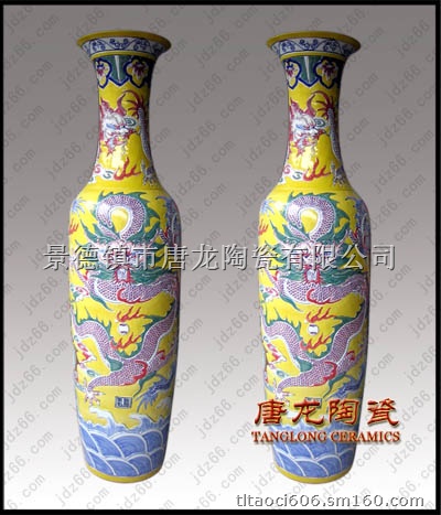 陶瓷大花瓶多用于大厅、门厅、客厅等摆设,主要用于开业礼品,大楼建筑落成、工程竣工开业、奠基典礼、酒店宾馆陈设、企事业单位乔迁、周年纪念、学校校庆、搬迁新居等。有特殊需要,在大花瓶身上可烧制LOGO、公司名称、人名、赠言,纪念用语,年月日等。全手工绘制,高白泥手工拉胚,高白釉上底色。陶瓷大花瓶要经过淘泥、摞泥、拉坯、修坯、绘画、上釉、烧窑、成瓷等近七十道工艺才能制做完成。