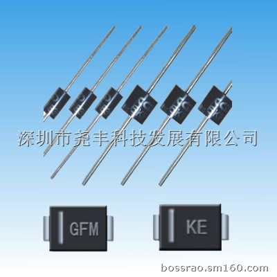 瞬态抑制二极管 它是一种响应速度极快的(ps级)浪涌电压抑制器件,不蜕化,对过电压敏感的电子元件以及易遭静电破坏的设备能进行有效的保护,其广泛应用在通讯,安防,电脑,汽车电子,电源适配器,家用电器以及军事、航天导航领域等。主要产品系列有SMAJ,SMBJ,SMCJ,SMDJ,SA,P6KE,P4KE,1.5KE,5KP,15KP,20KP,30KP产品齐全,