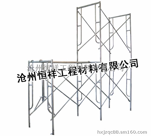 4) 脚手架的搭设,应先在端点底座上插入两榀门架,并随即装上交叉杆固定,锁好锁片,然后搭设以后的门架,每搭一榀,随即装上交叉杆和锁片。