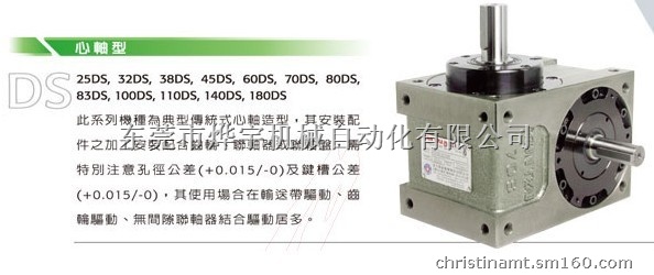 1、心轴型DS:分割器输出轴为心轴;适合于间歇传送输送带。