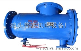 角通式过滤器:角通式过滤器由优质的碳钢主体和特殊结构的不锈钢楔形滤网与水流转向阀及排污装置组成,当过滤机工作时排污阀关闭,水流转向阀处于开启状态,水流由入口进入过滤机经过滤网过滤到出口,当过滤机需要排污时关闭水流转向阀打开排污阀,水流经滤网前半段过滤部分水流由出口流入系统,剩余水流由滤网后半段外侧流入内侧经排污口排出,起到反向冲洗过滤网的作用,反冲过程系统可正常运行无需停机.