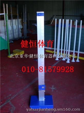 产品材质:YHJH-92型比赛铝合金跳高架,铝合金材料制作,双杆升降设计,带水平校正标尺,配重式底座更平稳。
