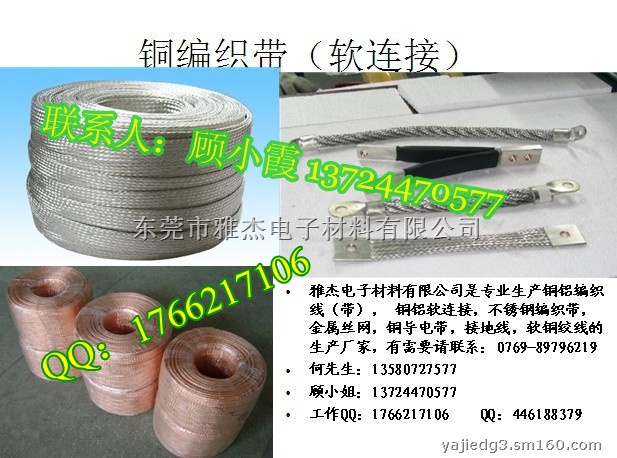 本公司专业生产:铜丝、铜编织带线、铜绞线、铜电刷线、不锈钢编织带,金属丝网。过滤金属丝网,导电带,电气用铜铝软连接,伸缩节,铜带软连接,铜编织带软连接,导电母线排,铜铝过渡软连接等,并可根据用户要求研制生产。