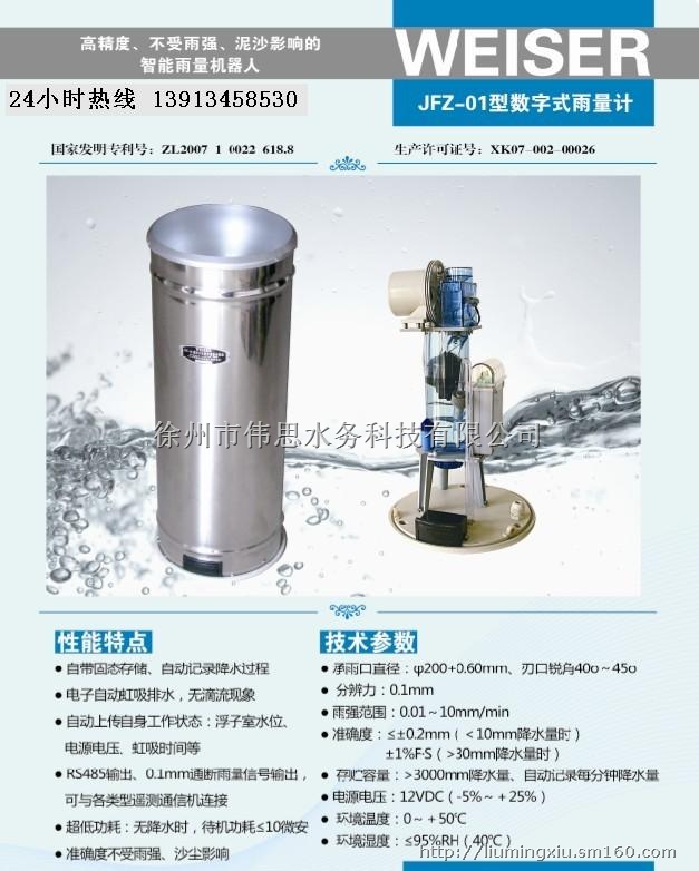 1)RS-485接口,输出实时累计降雨量、雨量编码器真值、相关报警信号(详见附录一JFZ-01数字式雨量传感器RS-485接口通信协议);