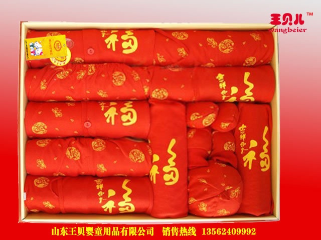 【产品特点】:这款礼包是2011年的最新款式,以红色为主题,红色意味着平安、吉祥、喜庆、福禄、康寿、红色以农耕文化为依托,以家族意识为核心,经过多少代潜移默化的熏陶,深深地嵌入了中国人的灵魂,礼盒配置也是非常全面合理。所有衣服都是适合宝宝在四季穿的款。里外均使用精美独特的包装,看上去非常豪华别致。送给新生儿做见面礼既体面又实用