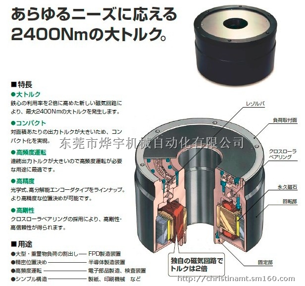 2. 直驱电机:设计自由度高,超静音新发明的薄型构造,与机械安装的自由度高,紧密型、直接驱动,从而实现超静音