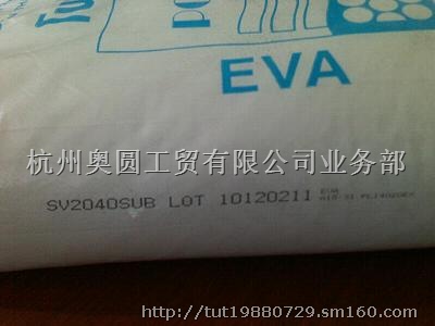 EVA SV2040VA:19MI:19密度:0.941硬度:34D熔点:83维卡软化点:54拉伸屈服强度:4拉伸断裂强度:16伸长率:820可提供COA证明