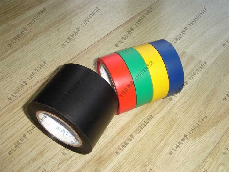 电工胶带(也称PVC绝缘胶带,PVC 泛指以氯化聚乙烯树脂为主要成分的塑料)以软质聚乙烯薄膜单面涂布橡胶系压敏胶制成。有红、黄、蓝、白、黑色等颜色。规格:长度为18M,宽可订做。