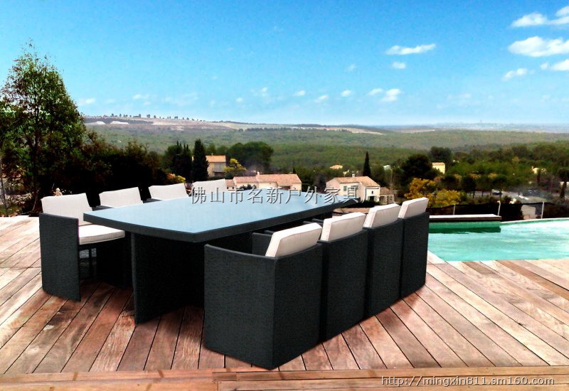 材料说明:1.采用优质铝合金,铁管为支架,经五金焊接技术后产品不变形,稳固。 2.钢化玻璃,高密度海绵。 3.pE仿藤,全手工编藤
