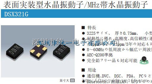 统一电子供应: 石英晶振、石英谐振器、SMD贴片晶体、石英晶体振荡器、 49/U、49/S、49/SMD、AT/3X8、AT/2X6 进口爱普生:FC-135.FC-255.MC-306.MC-146.VCXO.VC-TCXO FA-128.FA-23A.FA-238.TSX3225.TSX-4025FA-368SG3030LC 进口KDS:DST310S.DNX26S.DT-26.DSX321G.DSA535SGDSX530GA 进口西铁城:CM-315.CM-200S.CFS206.CSA310.CS10.CS325H 进口精工:SSP-T7-F、SP-T2A、VT200、SP-200 村田陶振:CSTCC-GA、CSTCR-G-B、CSTCE-V-A、CSTCG-V 进口石英晶体主要用于、手机、导航、航空、电脑等高端数码产品 进口全新原装现货、质量保证、正规代理、正规渠道