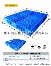 驰丰化工有限公司生产各种规格塑料托盘、垫仓板。同时开发出啤酒饮料自动流水线专用托盘和仓储物流专用货架托盘主要规格型号。型号如下: 1500*1500*150 1400*1200*150 1300*1100*150 1200*1200*150 1200*1000*150 1200*1000*160 1200*1200*170 1100*1100*155 1200*1000*165 1200*800*160 1000*800*160 1200*800*150 1200*1100*140 1200*1200*140 1200*1000*140(MM)等双面、单面、川字底、九脚底、田字底、平面、网格、网眼等规格系列托盘及垫仓板。塑料托盘与木托盘和钢托盘比较的显著优势:寿命:塑料托盘的使用寿命比木托盘长约10倍左右。质轻:塑料托盘比木托盘和钢托盘重量轻很多,便以搬运和运输。卫生:塑料托盘可随时用水清洗,美观环保性好。残值:使用过的塑料托盘仍有30%的可利用价值。塑料托盘正逐步被各行各业所认可并采用,是当今仓储物流设备中的主力军公司本着“以产品质量和顾客满意求生存、求发展、求效益”的宗旨,在激烈的市场竞争中,不断创新,不断发展壮大,已经充分赢得了广大客户的信赖。欢迎广大国内外客商前来洽谈,合作投资。
