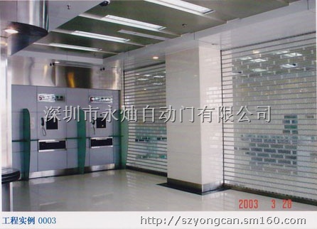 深圳永灿自动门的水晶卷帘门具有透明,防盗,抗雨,隔尘防尘等优点。永灿水晶卷帘门在商业街区广泛使用,成为传统卷帘门的最新替代品,也适用于需要较高能见度的内部开启门,门关闭后能大大降低噪音,提供安静的作业环境,水晶卷帘门的透明性又可提供极佳的能见度,使工作环境更加安全可靠。水晶卷帘门是银行,电信,地铁站,时装专卖店及别墅阳台等以追求安全,典雅,时尚气派场所的理想之选。 水晶卷帘门产品性能: 1、全透视设计,实现橱窗广告展示效果,为都市繁华地段商铺首选 2、采用聚碳酸酯,防盗性能好 3、密闭静音效果,防止风雨沙尘 4、高强度设计,坚固的铝型材嵌入PC门片,结构强度大,适合大型门面使用 5、设计简洁大方,外观高贵典雅 6、可上下/左右安装,适合特殊造型场所安装 水晶卷帘门的设计规格: 透明门片 材质:聚碳酸酯(PC防弹胶) 门片连接片 采用双层结构铝合金型材,特殊设计,可上下嵌入门片。 简洁大方,抗压性强 底座 采用304不锈钢,特殊设计,耐腐蚀,美观大方 静音轨道 采用304不锈钢,双槽设计,槽内可嵌入静音材料,达到静音效果 门控系统 采用220v电机,运行静音,安全可靠,经久耐用。 可实现:停电可切换为手动开启 选用配置:不可断电源、以上是深圳自动水晶卷帘门介绍