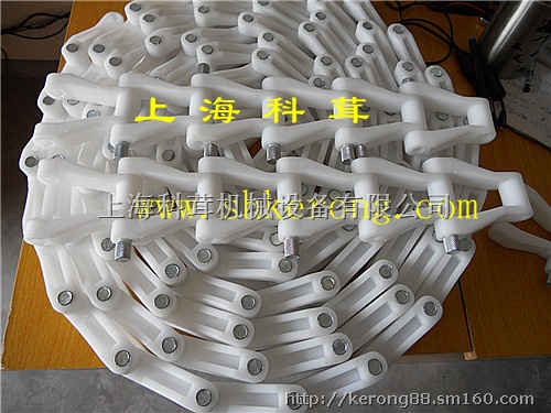 上海科茸机械生产批发;刮泥机塑料链条 刮板机传动链条 刮渣机塑料链条 气浮机传动链条 气浮机塑料链条 非金属刮泥机链条 非金属刮板机链条 非金属刮渣机链条 非金属气浮机链条 污水处理传动链条 气浮沉淀机链条 污泥机传动链条 化工行业专用链条输送链板; 化工行业专用链条, RS40P塑料链条,RS50P塑料链条,RS60P塑料链条,40P塑料链条,60P塑料链条,RT200小瓶输送链,2040P小瓶输送链,POM塑料链条,拖链,尼龙拖链,工程塑料拖链,半封闭塑料拖链,全封闭塑料拖链,塑料坦克链,PP坦克链, 可根据客户需要采用POM和PP材质制作,节距66.3mm 152.4mm采用工程塑料制作 中间配有304不锈钢穿杆具有拉力大 耐磨性能好,耐腐蚀耐酸碱的功能,其产品广泛应用于各类轻型输送机和化工、能源、光电、污水处理、造纸等行业