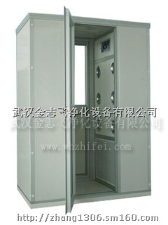 风淋室是人员或者货物进入无尘车间等洁净场所所必需的一种设备,通过风淋室时,风淋室 两面的喷嘴向人员或者货物用强劲干净的空气吹淋,有效地将人员和货物上的灰尘吹净,达到减少人和货物进出洁净场所的尘埃。风淋室的两道门电子互锁,不能同时开启,防止未被净化的空气进入洁净室。