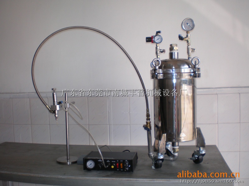 9、压力桶点胶设备使用范围广:单液/双液/多液大吐出量,小吐出量均可使用,因为其不锈钢储料桶可随需要更换大小,流量与出胶量均可调;