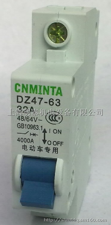 DZ47-63 电动电摩专用断路器,适用于电动电摩车,单极额定电压直流12V~64V,额定电流至63A的线路中过载、断路保护,同时也可以用在正常情况下不频繁地通断电器装置和电动车照明线路。本产品符合GB10963.1、IEC60898-1标准的要求。銘臺電氣