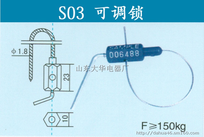 大华电器专业生产各种铅封,电力铅封,石油铅封,水电表铅封,铅封字头,铅封扣,带线铅封,防盗封铅,激光数码铅封,防伪铅封,防撬铅封,塑料铅封,铅封线,铅封钳,抽紧式钢丝封,施封锁,罐车施封锁,油库专用锁,电力表箱锁,铅封锁,铅封条,集装箱封条,集装箱铅封,货柜封条,施封环,油箱封,高保封,铁皮封,塑料封,挂锁封等多种校验密封产品,设备先进,技术力量雄厚。大华电器生产的铅封牢固,耐温易锁,防腐性能好,标识号码清晰,使用方便,价廉物美等特点,广泛应用于仪表、表箱,煤气表,供电、供气、供水、军工、石油运输、化工、矿山、邮政、海关、铁路、金融、货柜,外贸商检,集装箱,船舶,国内空运,国际空运,物流公司,船务公司,运输搬运设备,交通运输产品加工,及企业产品检验、包装桶封装、能源计量、防止偷盗泄密封存等行业,多年来一直深受广大用户信赖。欢迎订购使用!王虹虹:0543-6857677   13176282979)并可来样定做各种铅封,防盗铅封,塑料铅封,刻铅封字头,施封锁等。