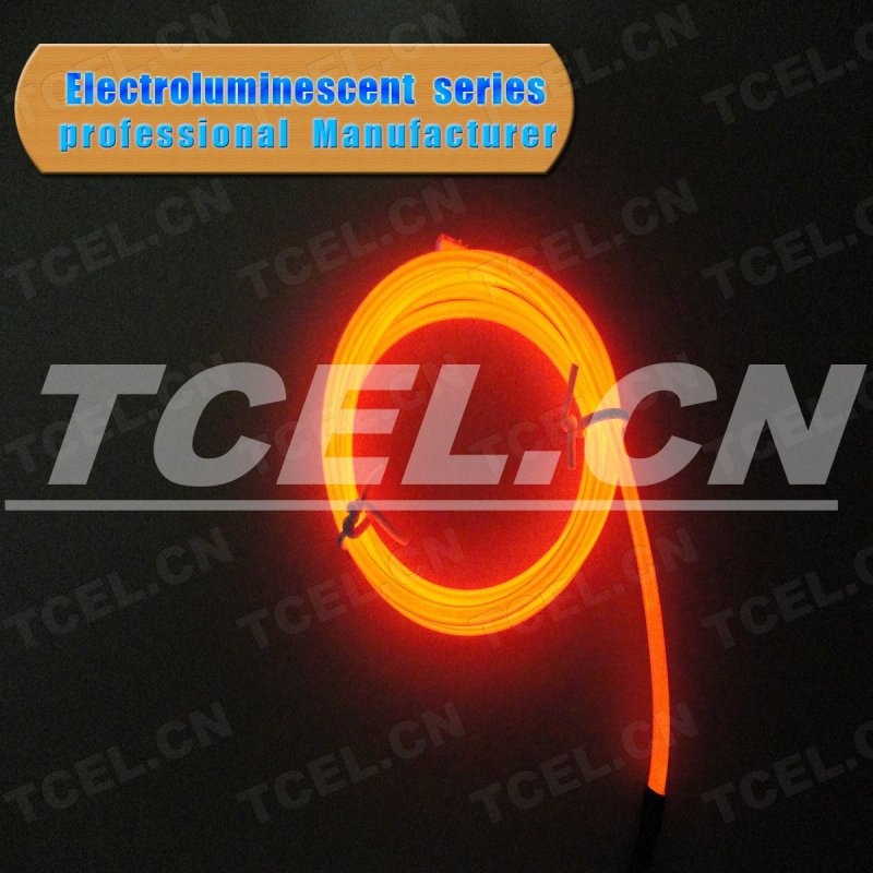EL 冷光线(发光线)又称冷光霓虹管。具有不发热、防水、能任意弯成各种形状或图形。它的发光颜色丰富,有红、绿、蓝、黄、紫、橙、透明、粉红、桔黄、白光等。主要线径规格有ф0.9、ф1.3、ф2.3、ф3.2、ф4.3、ф5.0(单位:mm)。是一种提供 360 度段射光源的高科技产品。它的光线亮丽而柔和,没有辐射,为设计新产品提供一种多变、实用、安全、省电的最新选择。