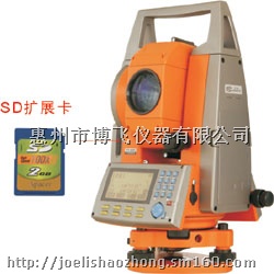 性能特点: 1、大屏幕中文界面,大字体设计,数字、字母、功能键、导航键操作; 2、国内首创选配2GB扩展SD存储卡,500万点数据,配备专业读卡器; 3、强大的内存管理功能,存贮50000点数据,自动记录各种数据; 4、开放的数据通讯功能,与计算机实时双向数据传输; 5、超大容量锂电双电池配置,超长时间待机,彻底解决野外测量的后顾之忧; 6、图示化放样引导功能,在线可编程,软件升级更加方便快捷; 7、方便快捷的功能键自定义功能,预装丰富的测量应用程序; 8、坐标测量、放样测量、后方交会、对边测量、悬高测量、偏心测量、角度复测、直线放样、曲线放样、交叉测量,道路放样等多种程序;