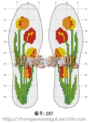 1, 鸿运玫瑰十字绣印花鞋垫,因印有图案,解决了数格子的问题。