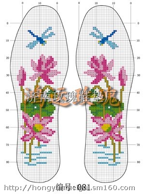 1, 鸿运玫瑰十字绣印花鞋垫,因印有图案,解决了数格子的问题。