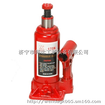 由油箱,大小不同的两个压力油缸、摇杆和关闭针阀等几个部分组成。工作时,提起小活塞将油吸入小压力油缸,当压下小活塞时将油压进大压力油缸。通过两个阀门的控制,小活塞对油的压强传递给大活塞,将重物顶起来。小活塞不断地往复动作,就可以把重物顶到一定的高度。工作完毕,打开关闭针阀,使大压力油缸和油箱连通。这时,只要在大活塞上稍加压力,大活塞即可下落,油回到油箱中去。