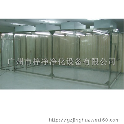 广州百级洁净棚是一种投资少而净化级别高,移动比较方便的简易净化装置。将洁净层流罩FFU放置在由专业净化铝型材组装而成的框架上。顶部由盲板铺盖,密缝严密,四周用防静电帘/防静电有机玻璃围缝,四周底部利用正压自然排风等形式,使棚区内洁净度达到10-10000级。其具有安装快速、施工周期短、价格低廉、移动方便等特点,把主要生产工序控制在较小的环境内也是洁净室设计的最佳选择。