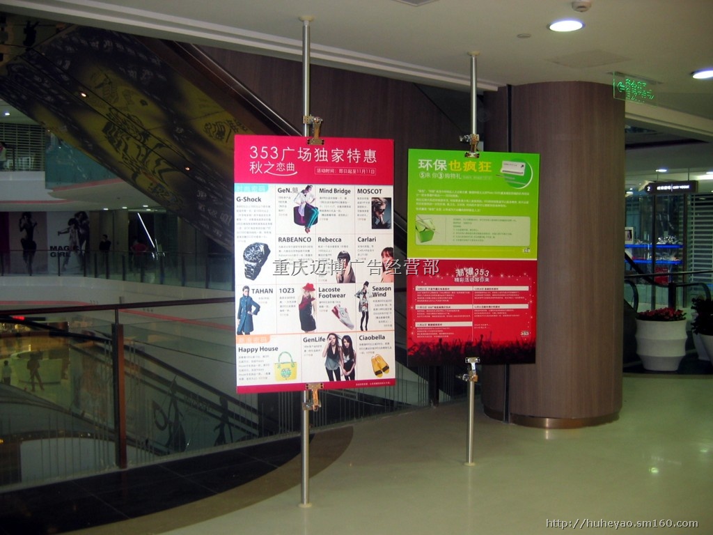 重庆商场天地柱海报架 双面展示墙 户外注水抗风展架 挂画轴