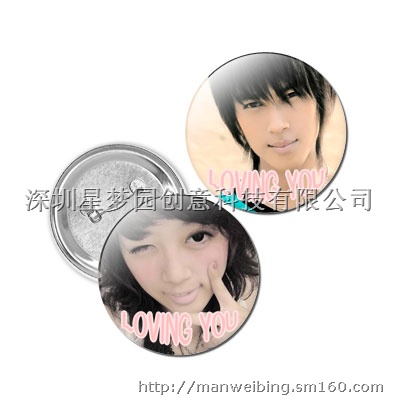 材质:马口铁 徽章的正面可印照片/图案/文字 规格:直径5.8cm
