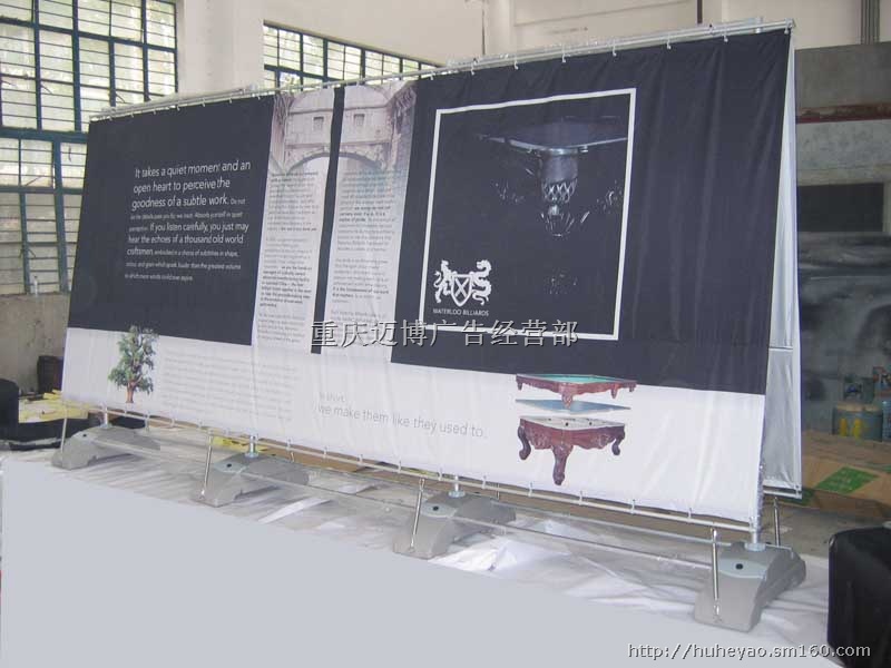 户外展架采用可随意拆卸和组装的注水型ABS底座,铝合金支撑杆,它是一种户外大画