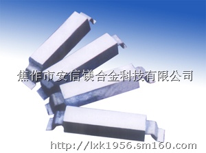 最常用的铝合金阳极有 Al - Zn - In 系和 Al - Zn - Hg 系阳极,适用于海水中的船舶、港工与海洋设施、海水冷却水系统和储罐沉积水部位等构筑物的阴极保护。铝合金阳极生产执行 GB4948 - 2002 《铝-锌-铟系合金牺牲阳极》。