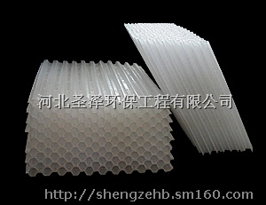 我单位六角形蜂窝填料(斜管填料)材质有聚丙烯(PP)、聚氯乙烯和玻璃钢三种。组装形式的斜管和直管两种形式。