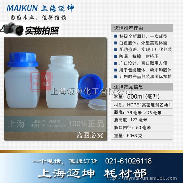 上海迈坤公司(耗材部)长期供应大口蓝盖塑料瓶系列