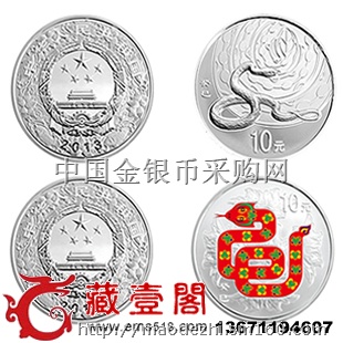 以下11枚金银纪念币背面图案均为写实蛇造型衬以装饰蛇纹样,并刊面额及“癸巳”字样。