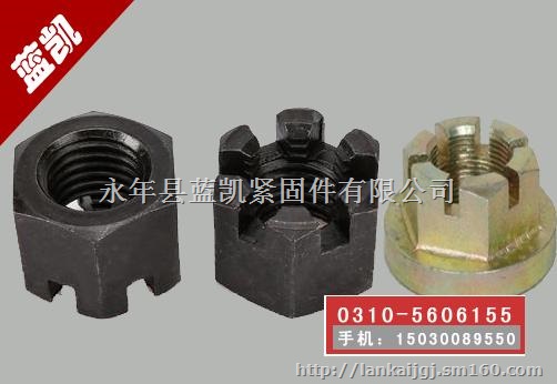 我公司可生产各种规格的普通开槽螺母、高强度开槽螺母。材质有:Q235、45#、40Cr、35CrMoA、Q345D等。表面处理采用:电镀白锌,蓝白锌,五彩锌,发黑,本色五种表面处理方式可选;产品等级有:4.8 、8.8 、10.9 、12.9级可选。广泛应用于建筑、机械、铁路、起重、钢铁、电厂、港口、冶化等众多领域。蓝凯公司致力于工业起重、轨道交通、矿山运输等行业的研究开发和生产加工,拥有雄厚的研发实力和可靠的质量保障能力。我们的宗旨是“诚信第一、质量为本”,强调质量和诚信是公司立业的基础,了解用户的需求,“在服务中成长,与用户共同发展”是我们的追求。