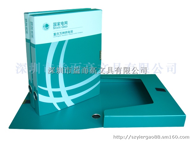 材质:重庆万州国网档案盒采用优质环保耐用PP(厚1MM)原材料生产,在档案盒封面丝印国家电网LOGO及名称。在档案盒侧背处热压一个标签袋,插背条纸,配手指环.