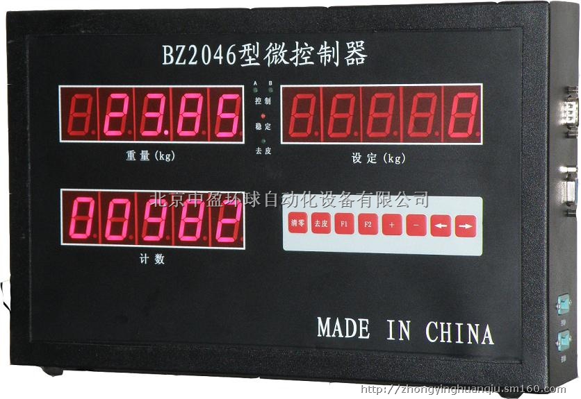 BZ2046称重显示控制器接受传感器输出的模拟信号(本公司供应全系列称重传感器),经内部采集处理后,计算并显示出秤体上物料的重量值。对秤体上物料的重量值与设定值的进行比较,如果重量值达到了设定值,控制器就输出控制信号给执行设备(如进行停止给料、掉袋等动作),本仪表可输出2路开关量输出。
