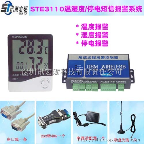 STE3110温湿度停电报警系统可检测环境温湿度报警、停电来电报警,温湿度报警与停电报警相互独立,报警内容自定义,报警短信可同时发给6个手机号码。