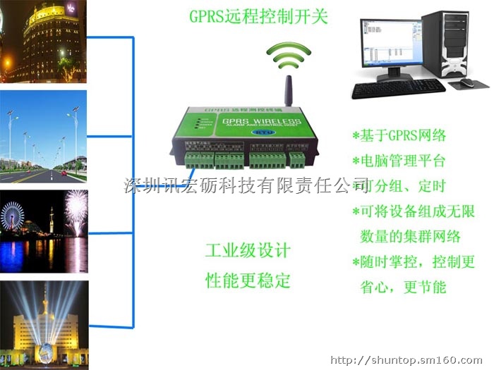 GPRS景观灯控制器通过无线网络实现远程控制景观灯或路灯开关。GPRS控制器的优点是通过电脑软件同时控制数百数千景观灯或路灯开关,操作简单快捷,真正实现了远程无线控制景观灯或路灯的开关。