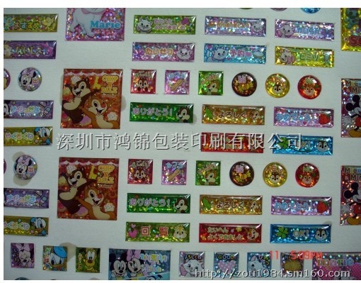 采用镭射膜印刷,模切| +滴胶。具有闪亮的效果。