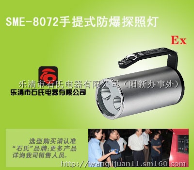 SME-8072便携式防汛应急照明灯,手提式超强光搜索灯,防雨防爆照明灯适用于公安、消防、部队、油田、冶金、铁路、电业、石化等各种易燃易爆场所的ⅡC类T1-T6组1区、2区、水下及其他工作现场。
