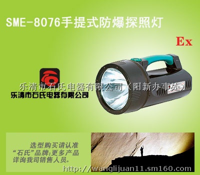 SME-8076手提式防爆探照灯,手提式防爆强光探照灯,强光防爆探照灯适用于部队、石化、油田、消防、电力、公安、海关等易燃易爆场所作为移动照明。