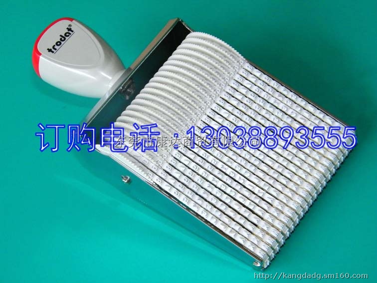 二、20位,3MM字高,盖印总宽约75MM。中英文款,每条带上均有数字0-9和英文字母A-Z及符号“.”“+”“-”“×”“/”。
