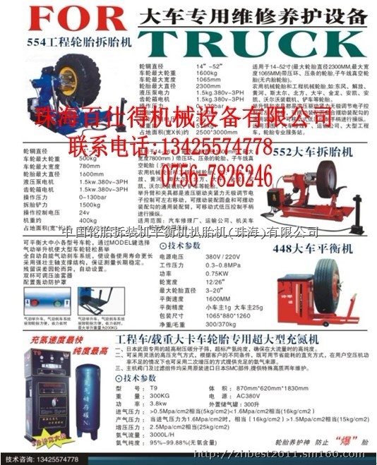 扒胎机平衡机氮气机拆胎机百仕得公司其先进的轮胎汽保设备更是获得了世界绝大部分汽车集团:包括法拉利、兰博基尼、戴姆勒克莱斯勒、尼桑、欧宝、福特、标致、雪铁龙、菲亚特集团、雷诺、依维柯及大众集团等汽车厂商的认可。并与世界主要的轮胎制造厂:普利司通、固特异、米其林、马牌及倍耐力等有着紧密的全球合作关系。本厂主要供应: 轮胎动平衡机、AF3009轮胎拆装机、BL-509扒胎机, 无需毳棍扒胎机,高扁平比轮胎机、米其林PAX轮胎拆装机、520A扒胎机、511全自动拆胎机、508轮胎机, 轮胎氮气机. 轮胎自动充气机,保护焊机,汽车外形修复机,介子机,本公司提供轮胎平衡机,轮胎拆装机的整套配件.拆胎机配件:大气缸,小气缸,气缸活塞,气缸密封圈,拆胎机开关,拆胎机旋转阀,拆胎机卡爪,拆胎机气动阀,拆胎头,保护胶垫.拆胎机开关支架,拆胎机马达等.平衡机配件有:平衡机按键板,平衡机电源板,平衡机电脑板,平衡机螺母,平衡机皮带,平衡机丝杆,平衡机电机