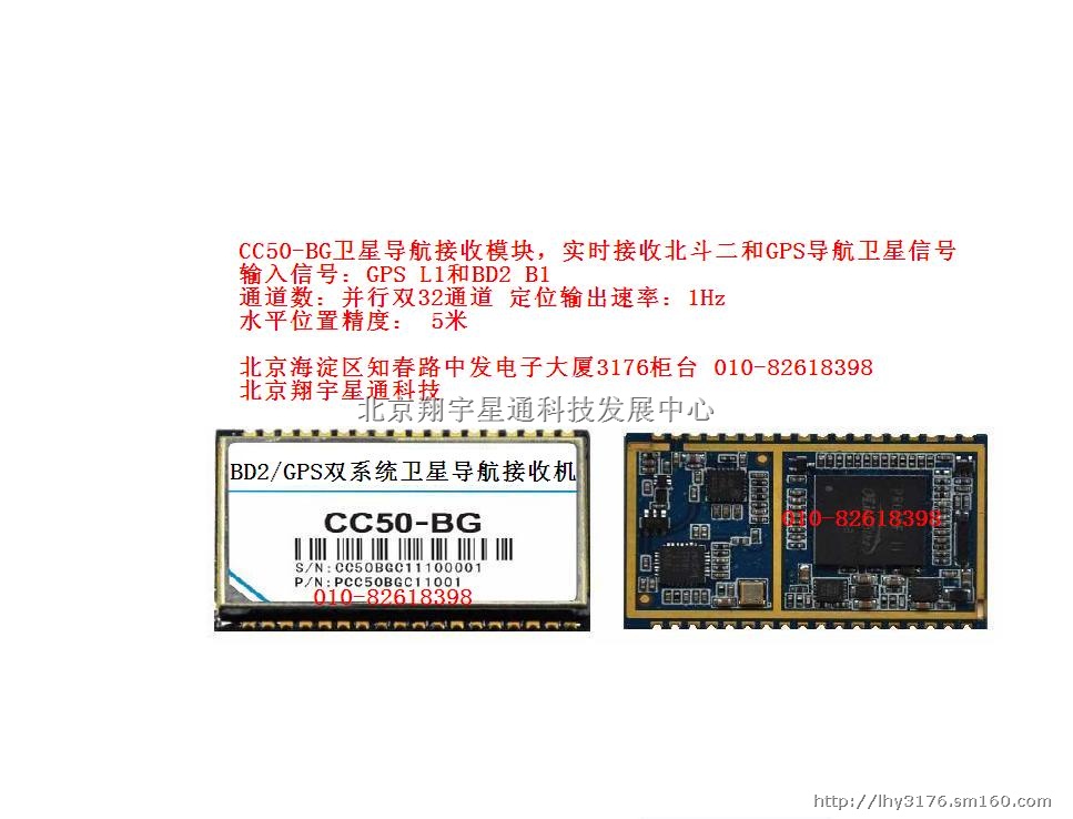 CC50-BG卫星导航接收模块,实时接收北斗二和GPS导航卫星信号,实现机动载体的实时高精度三维定位、三维测速、精确授时。