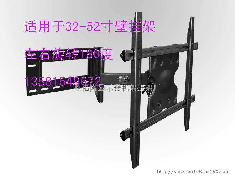 | 单臂伸缩架 | | 适用于:<46" | | 最大孔距:235-750x440mm | | 最大载重量:50kg | | 角度调整: -5°/+15°? | | 水平调整:?-5°/+5° | | 臂长:740mm | | 厚度:120mm | | 净重:11.5kg | | 毛重:13kg | | | 1.可调节幅度大,可上下左右及前后多方向调节满足客户观看需要 2.有完整的挂线装置 3.外观美观,高贵 4.有显示器安装锁紧机构,显示器安装及拆卸安全、方便 5.可调角度满足不同角度观看的需求,有锁紧把手可固定调节好的角度。 可调角度:无限制 VESA:无限制 承重:125 lbs max 适用于:32"-46" LCD |