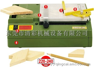 直径58mm的超强圆锯片可切割厚达8mm的软木,厚约3mm的塑料(胶纸板也可),厚约1.5mm的有色金属。可使用硬质钢圆锯片切割玻璃纤维PC卡。220-240V, 85W,经VDE认证的电机运作安静,工作寿命长。侧门可方便地去除锯屑。总尺寸约为240x180x80mm。重量1.8kg。