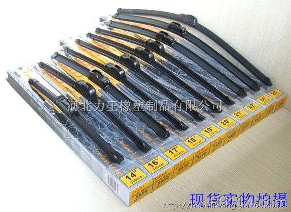 无骨通用型雨刮---无需更换之臂直接安装,无骨雨刷很软可以适应各种弧度的玻璃。此无骨雨刷是无骨雨刷的升级款,比老一代的无骨雨刷虽在外型上区别不大,但是新款采用了更加耐用的橡胶材料和锋利的刷头。此新款产品被欧洲车厂广泛使用在新款车型上。其特点为:产品非常耐用、对玻璃的清洁效果远远高于普通雨刷、因为此雨刷的刷头没有钢铁骨架,所以磨损均匀,决不会被普通雨刷的骨架刮伤风档玻璃。目前最先进的雨刷设计结构“无支点软骨雨刷”,采用世界最新材料技术,利用环型记忆金属为主体结构,一体成型设计,完全没有关节支点,使用越久反而雨刷更贴合挡风玻璃弧度,采用全段全覆式加压片设计,可以给雨刷最平均的受力加压,以避免雨刷作动噪音。