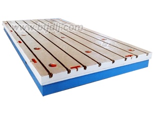 T型槽平台精度等级有00、0、1、2、3、级及精刨,平板制成筋板式和箱体式,工作面有长方形、正方形或圆形。工作面采用刮削工艺,工作面上可加工V形、T形、U形槽和圆孔、长孔等。